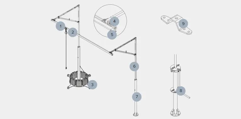 The Flexbow is a standardized outrigger jib to secure loading bays and machinery. Equipped with an integrated energy absorber, it is a lightweight and yet robust design for industrial applications with a minimum fall clearance of 4m.