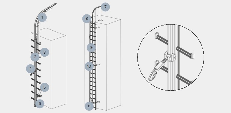 Fixing assembly Securail Pro vertical on ladder rungs RHF521